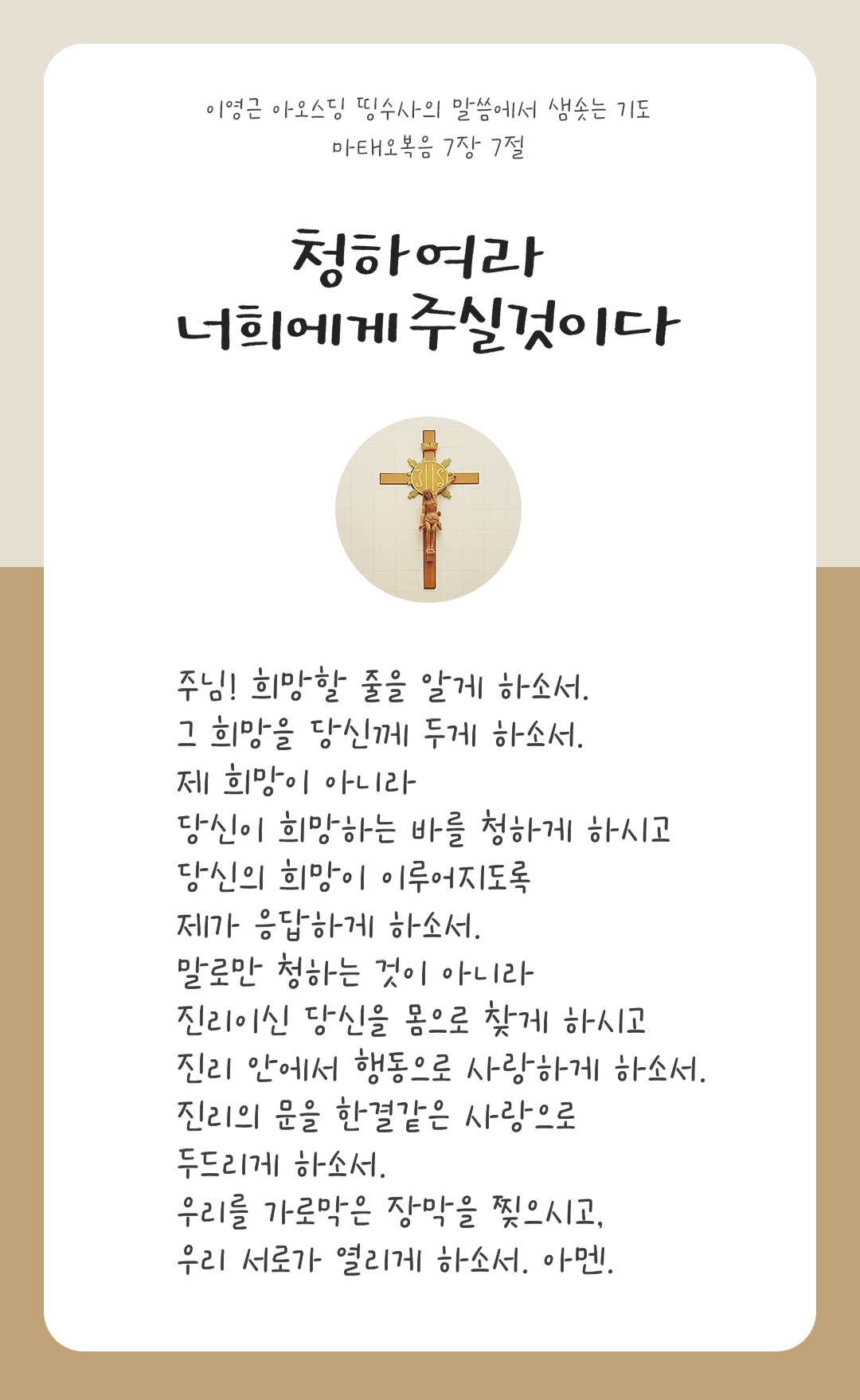 청하여라, 너희에게 주실 것이다. (마태 7,7)