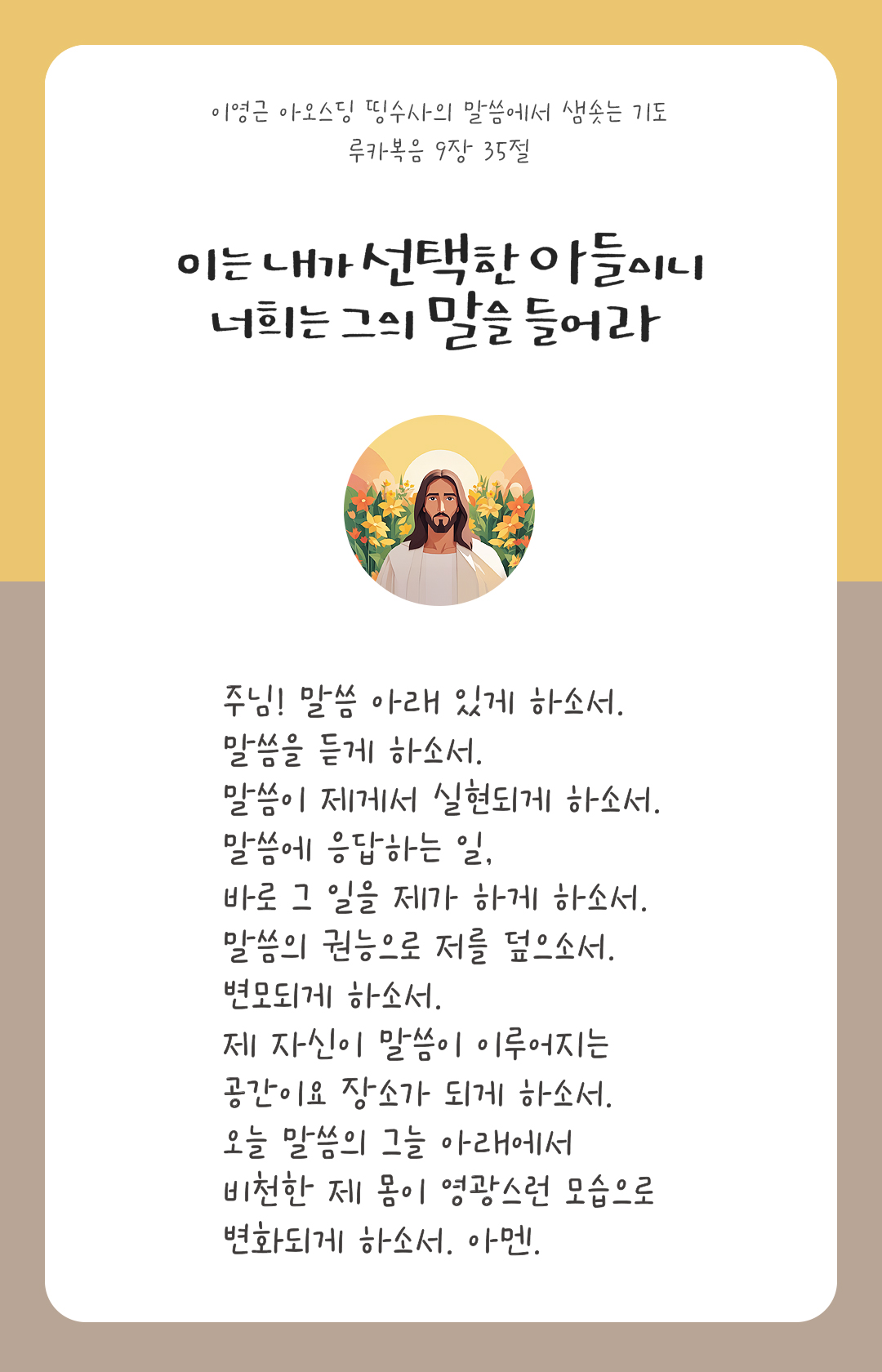 이는 내가 선택한 아들이니 너희는 그의 말을 들어라. (루카 9,35)