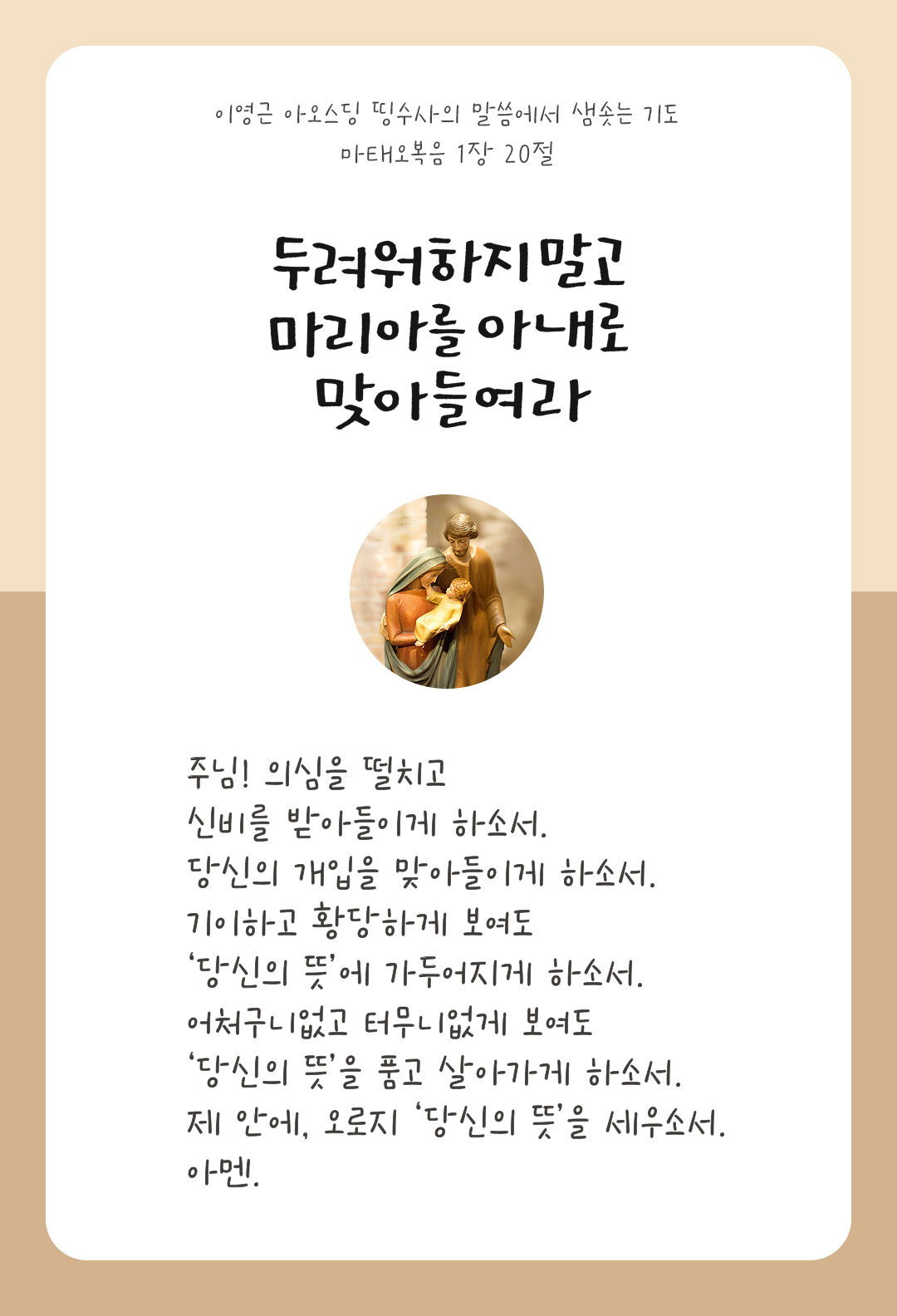 두려워하지 말고 마리아를 아내로 맞아들여라. (마태 1,20)
