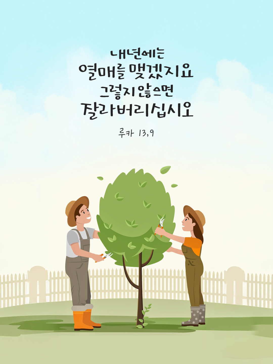 주인님, 이 나무를 올해만 그냥 두시지요. 그동안에 제가 그 둘레를 파서 거름을 주겠습니다. 그러면 내년에는 열매를 맺겠지요. 그러지 않으면 잘라 버리십시오. (루카 13,8-9)
