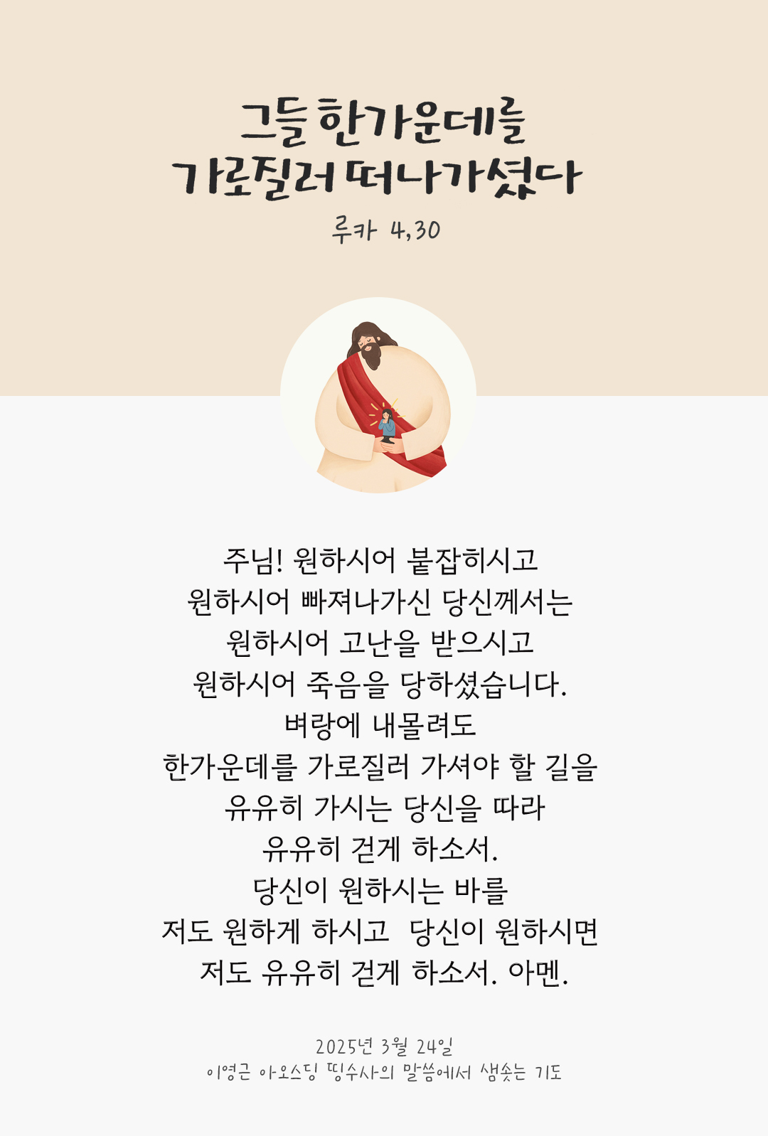 예수님께서는 그들 한가운데를 가로질러 떠나가셨다. (루카 4,30)
