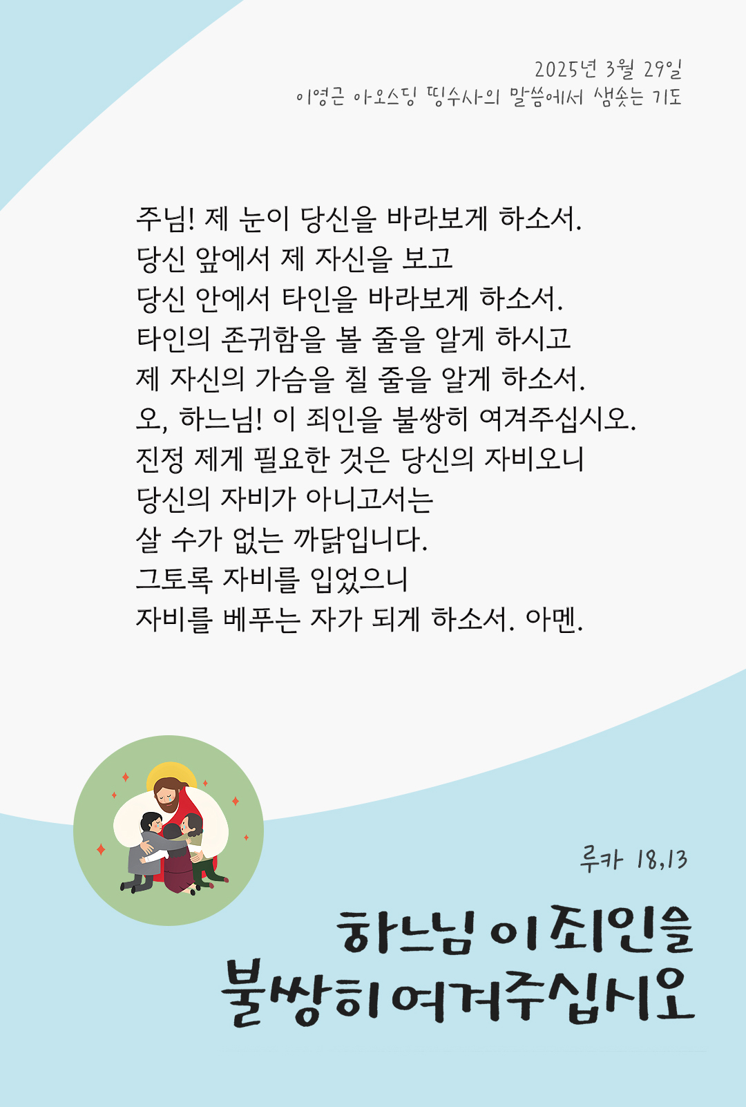 오, 하느님! 이 죄인을 불쌍히 여겨주십시오. (루카 18,13)
