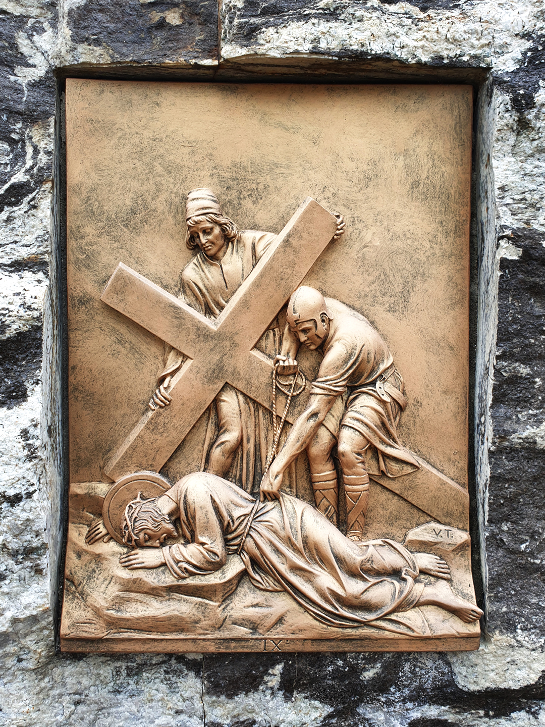예수님 : 넘어진다는 것은 누구에게나 힘든 일이다. 누구든지 꿋꿋하게 버티어 내어 결국엔 성공하기를 바라기 때문이다. 나는 하느님임에도 불구하고 십자가 밑에서 힘없이 넘어졌다. 내가 일으킨 기적들을 놀란 눈으로 목격했던 그 사람들이, 지금은 넘어지고 매 맞고 멸시된 나를 보고 있다.