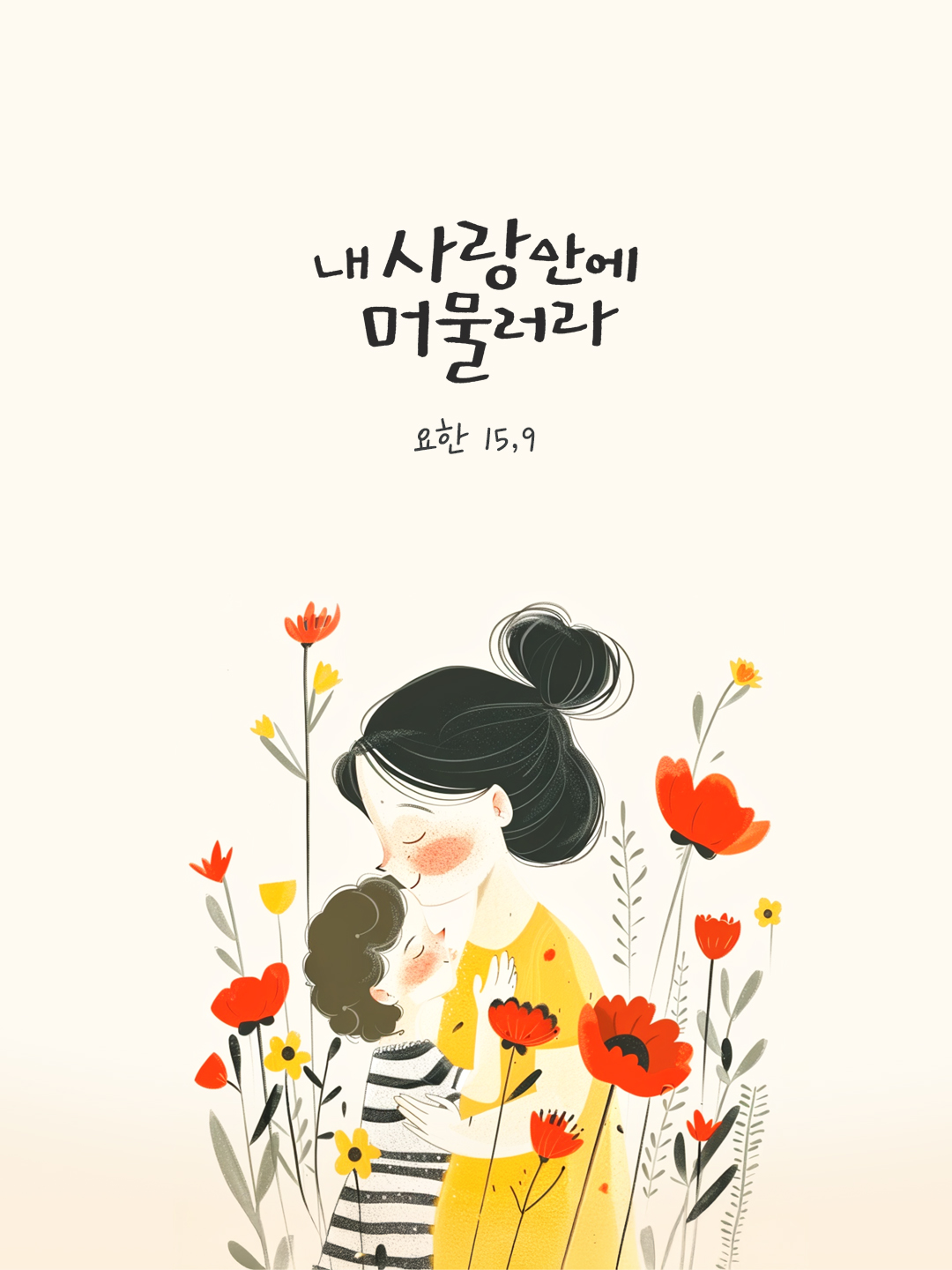 아버지께서 나를 사랑하신 것처럼 나도 너희를 사랑하였다. 너희는 내 사랑 안에 머물러라. 내가 내 아버지의 계명을 지켜 그분의 사랑 안에 머무르는 것처럼, 너희도 내 계명을 지키면 내 사랑 안에 머무를 것이다. 내가 너희에게 이 말을 한 이유는, 내 기쁨이 너희 안에 있고 또 너희 기쁨이 충만하게 하려는 것이다. (요한 15,9-11)