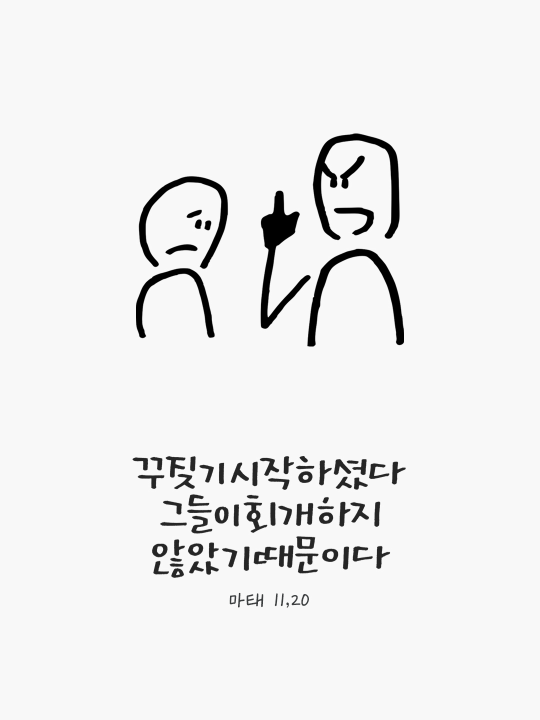 그때에 예수님께서 당신이 기적을 가장 많이 일으키신 고을들을 꾸짖기 시작하셨다. 그들이 회개하지 않았기 때문이다. (마태 11,20)