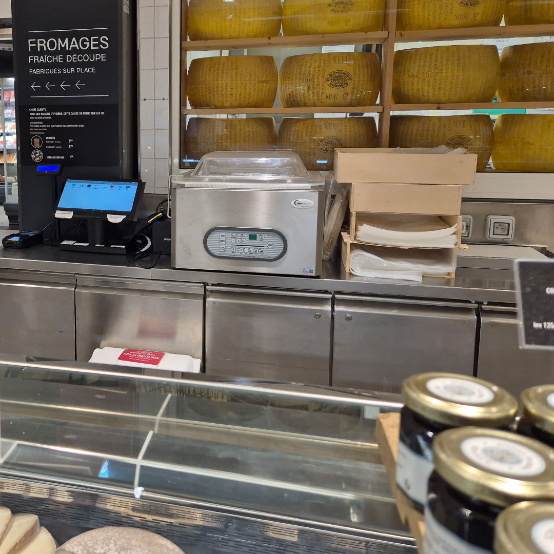 메인 계산대에서 1장당 1유로 판매해요. 진공포장지를 구입해서 영수증 가지고 치즈 전문점으로 가면 진공포장해줍니다. 여러 사이즈의 진공포장지가 있는데 봉마르쉐 진공포장지보다 사이즈가 훨씬 커요. 사이즈마다 가격은 1유로로 동일합니다.
