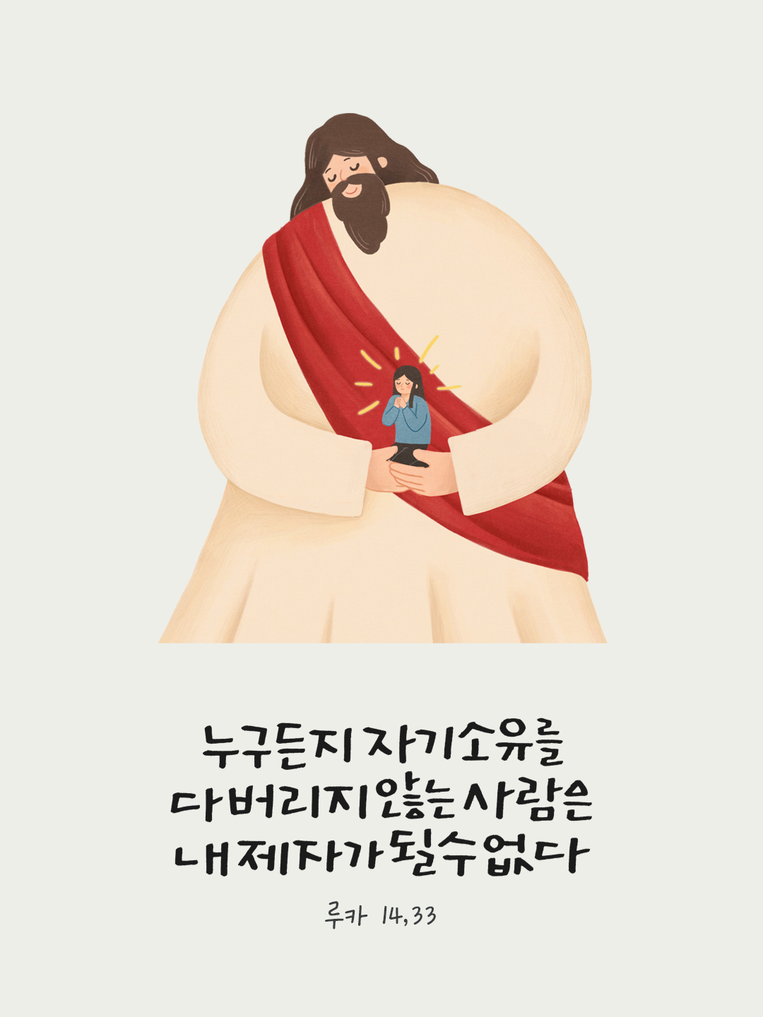 지금 여기에서 하루를 시작하며 오늘의 말씀카드 성경구절을 통해 말씀을 기억하고 마음을 새롭게 하도록 도와주심에 감사합니다. 오늘의 말씀은 루카복음 14장 33절 입니다.