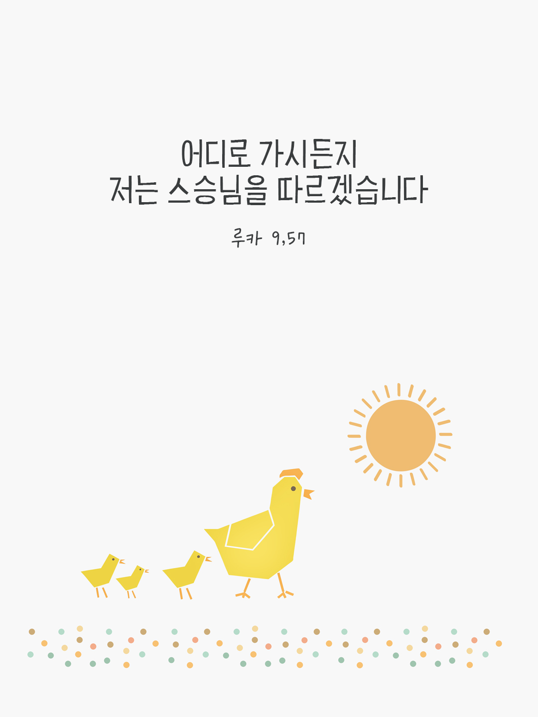 지금 여기에서 하루를 시작하며 오늘의 말씀카드 성경구절을 통해 말씀을 기억하고 마음을 새롭게 하도록 도와주심에 감사합니다. 오늘의 말씀은 루카복음 9장 57절 입니다.