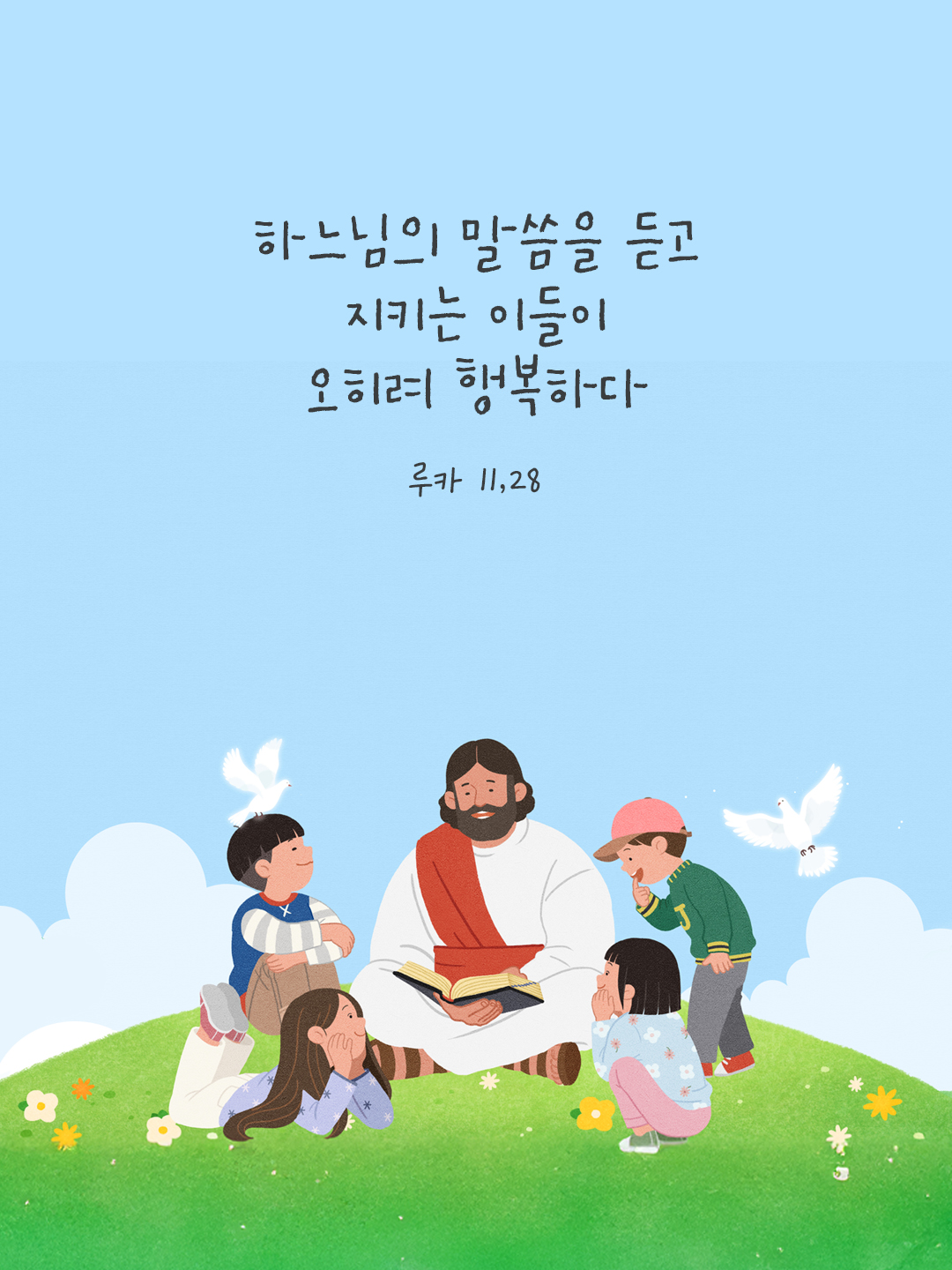 지금 여기에서 하루를 시작하며 오늘의 말씀카드 성경구절을 통해 말씀을 기억하고 마음을 새롭게 하도록 도와주심에 감사합니다. 오늘의 말씀은 루카복음 11장 28절 입니다.