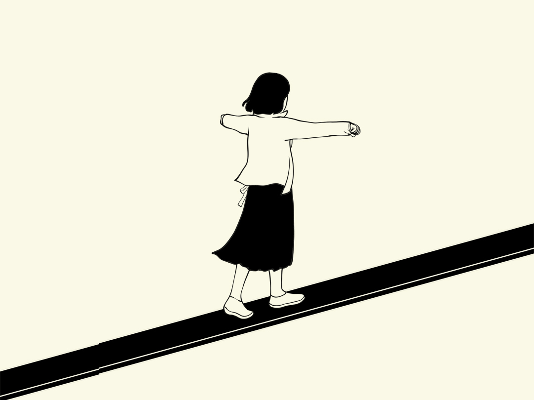 외나무 다리를 건너는 소녀